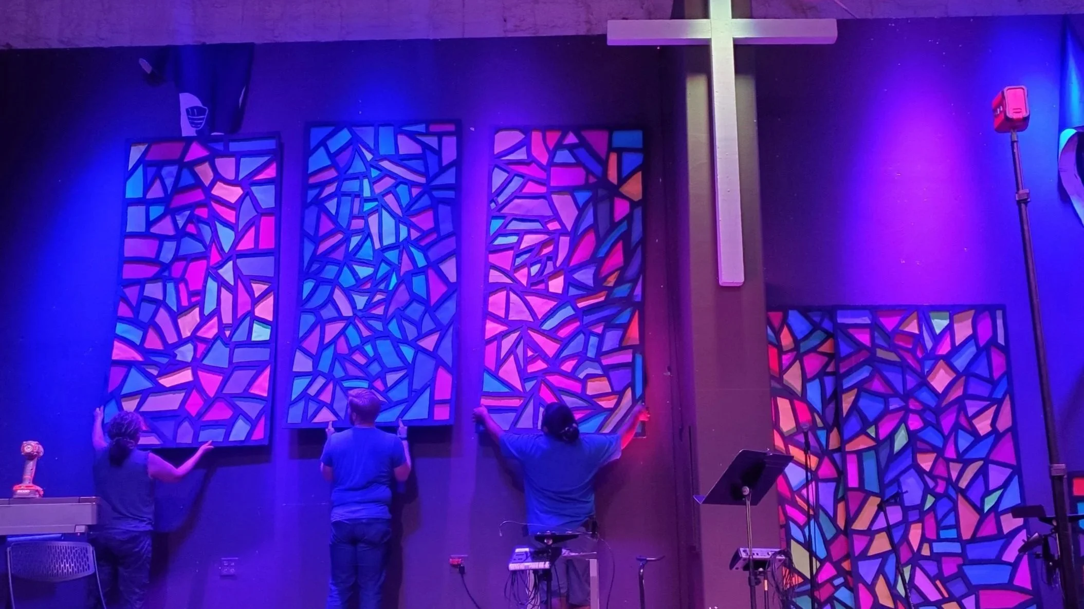 Help with decorating different parts of the worship center, including the stage.